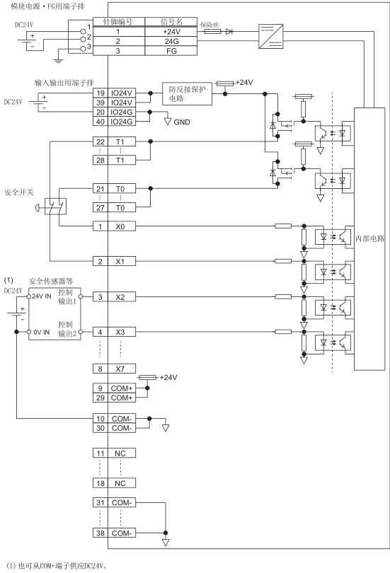 NZ2GNSS2-8D參數說明:DC輸入8點(單一配線時),冗余配線時4點;DC24V 7.3mA;響應時間1~70ms,8點1公共端,負公共端;彈簧夾端子排連接型。