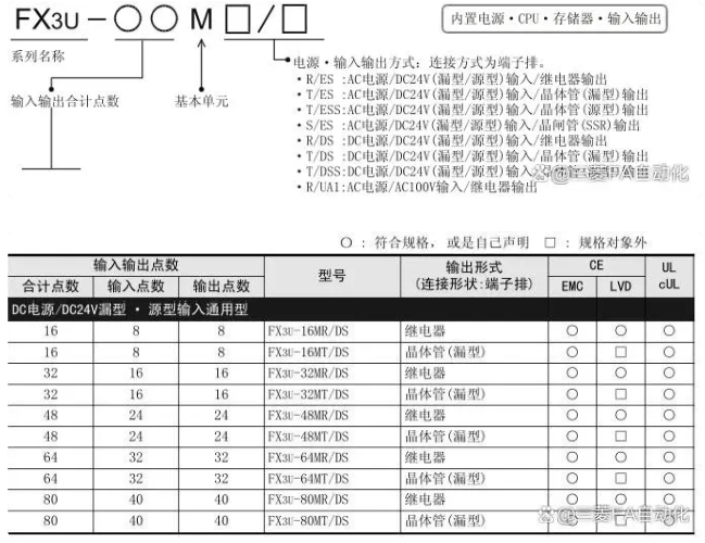 FX3U/DS產品型號有FX3U-16MR/DS,FX3U-16MT/DS,FX3U-32MR/DS,FX3U-32MT/DS,FX3U-48MR/DS,FX3U-48MT/DS,FX3U-64MR/DS,FX3U-64MT/DS,FX3U-80MR/DS,FX3U-80MT/DS。